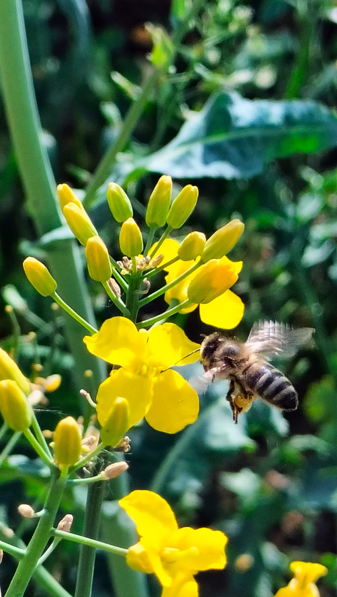 „Przesyłam fotkę pszczółki w akcji. Żeby ją uchwycić, musiałam się nagimnastykować i pokornie czekać. Bardzo zapracowana, latała z jednego kwiatka na kolejne. Tempo, precyzja hipnotyzowały. A tylko po to, by rzepak zapylić, a przy okazji zebrać pyłek na miód do słoiczka 😉”
