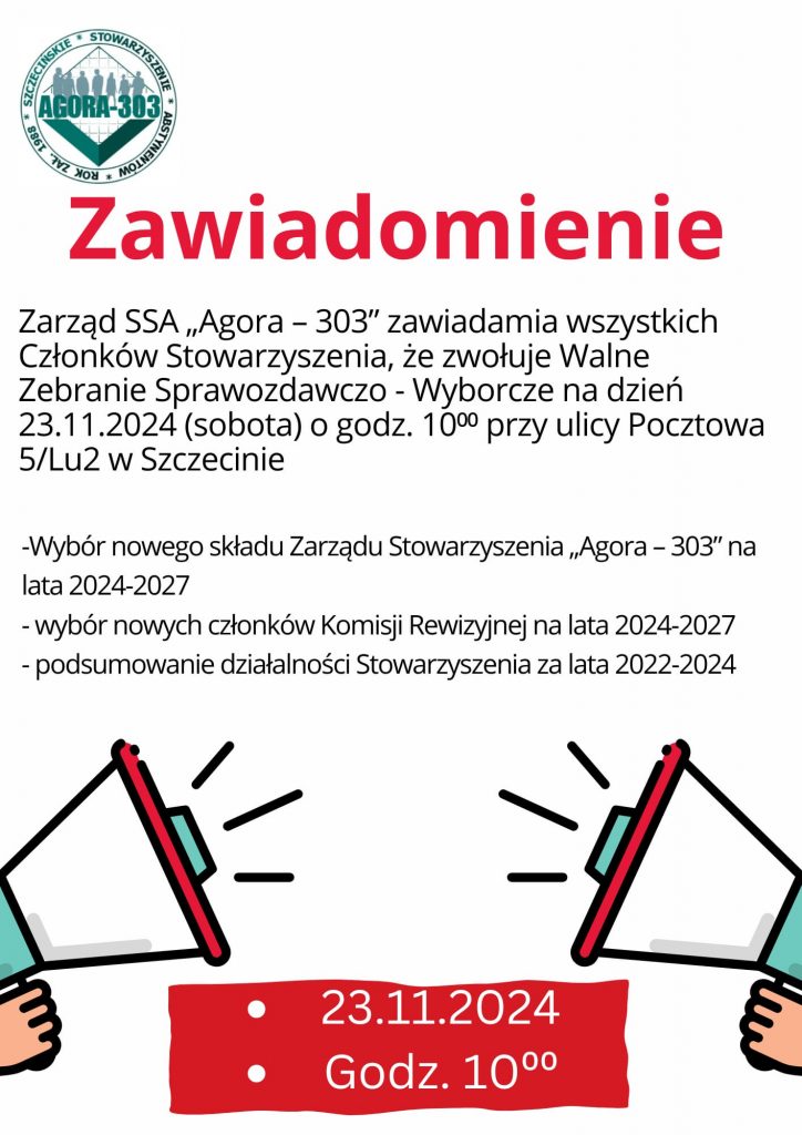 Porządek Walnego Zebrania Sprawozdawczo – Wyborczego Stowarzyszenia „Agora-303” za okres 2022 – 2024